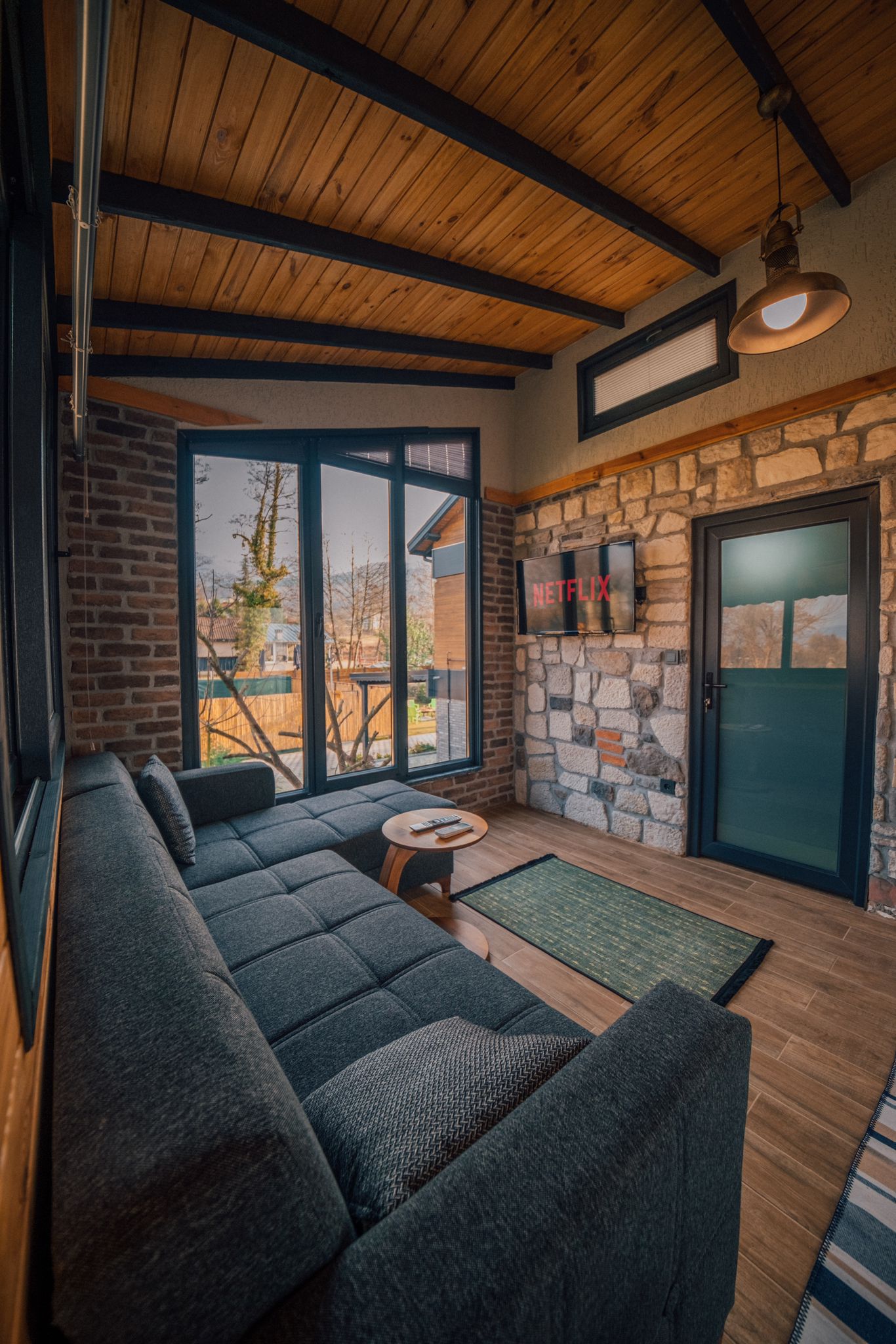 Ahşap mimarinin sıcaklığını modern detaylarla buluşturan bu bungalov, hem çiftler hem de küçük aileler için mükemmel bir konaklama seçeneğidir. Geniş bahçesi, barbekü alanı ve doğa manzarasıyla tatilinizi unutulmaz hale getirir.