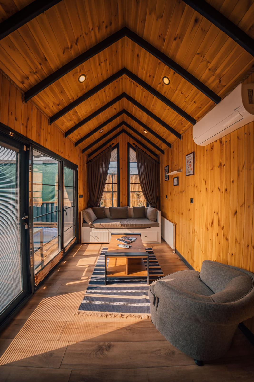 Doğanın kalbinde, modern detaylarla tasarlanmış Ev - 103 Bungalov, size özel havuzu, geniş verandası ve huzur dolu atmosferiyle dört mevsim konforlu bir kaçış noktası sunar.Tamamen size ait alanında güne serin bir havuz keyfiyle başlayabilir, gün batımında verandada kahvenizi yudumlayarak doğanın sessizliğini hissedebilirsiniz. Şık iç dekorasyonu, konforlu yatak odaları ve ferah yaşam alanı sayesinde hem romantik tatiller hem de aile konaklamaları için idealdir.Barbekü alanı, bahçe oturma grubu ve güneşlenme şezlonglarıyla keyifli anlar yaşamanız için her detay düşünülmüştür.Ev - 103, şehirden uzaklaşıp doğayla baş başa kalmak isteyenler için mükemmel bir seçimdir.